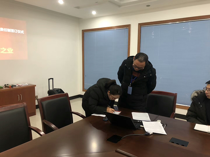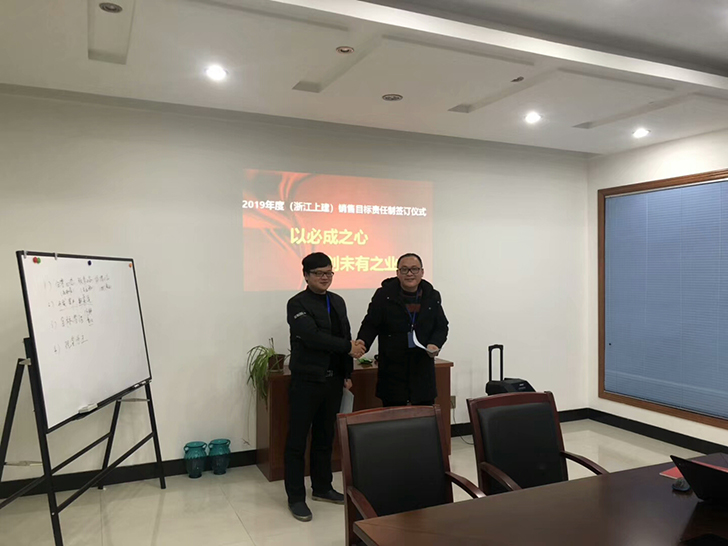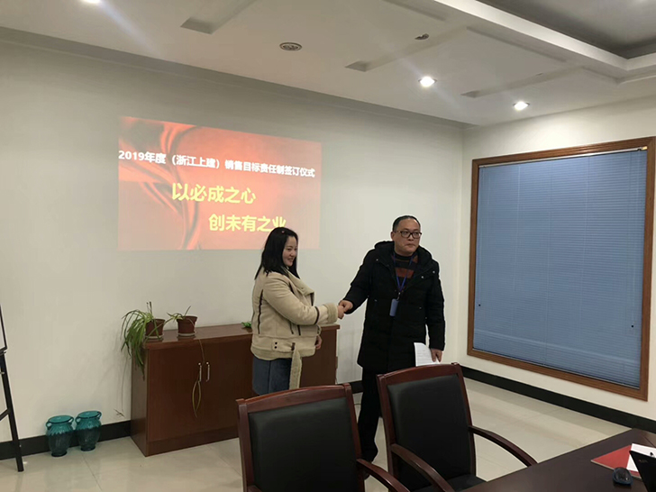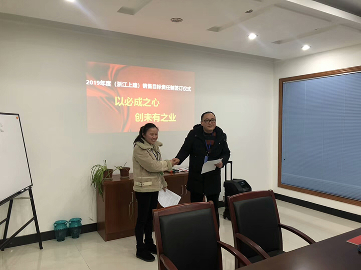 为保证公司2019年度经营目标顺利实现,建立绩效管理体制和激励约束机制,强化企业执行力,提升公司竞争力,2019年1月14日公司举行了销售目标责任制签订仪式。目的是通过这样仪式,把责任形式确定下来,让每位销售员更加明确自身工作责任和压力,增强意识,提高认识,推进公司各项工作在新的一年里更上一台阶。