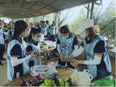 蓝蓝天空,美得不像话吧!大家的心情也像这明媚的阳光一样,到了拓展场地第一件事就是集合,看着一列列方阵多么地整齐,这就是平博pinnacle平台人的风貌!随后营销总监兼拓展教练沈总介绍了上午的拓展任务,厨艺大比拼!当沈总说开始的话音刚落,六支队伍的队员顷刻间化整为零,有的去准备食材、有的拿起锅勺化身大厨、有的点燃烤炉摇身一变成为全场最火热的那个人,场面一下子热闹起来。