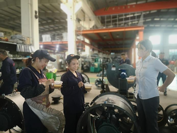 骄阳似火,酷暑难耐,上虞又迎来了今年的高温季节,持续的高温炙烤着虞舜大地,空气中弥漫着闷热的气息。在平博pinnacle平台,车间的一线职工如火如荼地工作着,突然闷热的环境中出现一阵清凉。哦!原来是民泰银行的伙伴已经为职工们备好冰凉清爽的绿豆汤,一碗一碗亲手递到职工们的手上,让冰甜的绿豆汤带走暑气,给予丝丝凉意,炎炎三伏,清凉一夏!