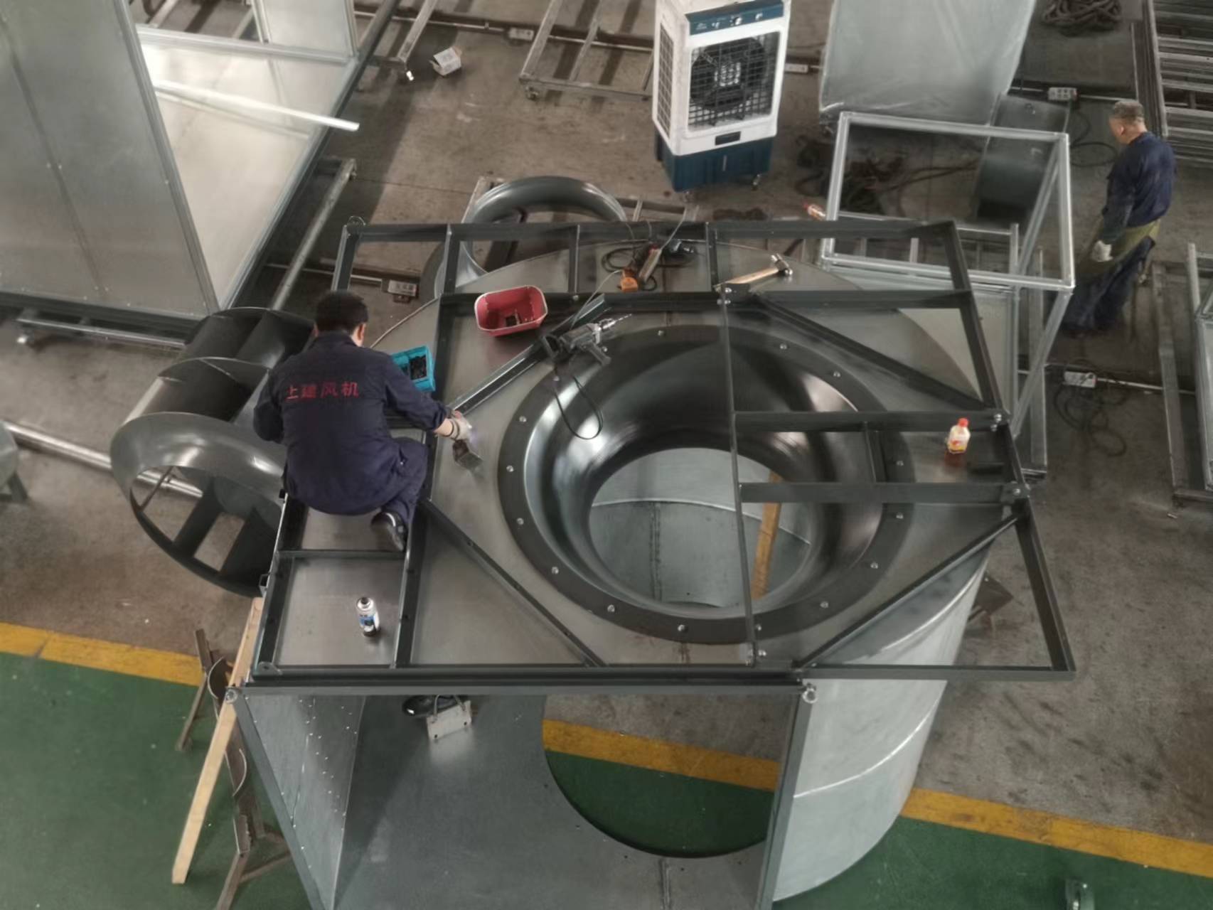 HTFC-V-16是公司成立以来最大的箱体风机。为了保质保量的按时完成HTFC-V-16,车间上下全体成员积极响应公司号召,发扬不怕苦、不怕累的精神,以高昂的斗志迎接新挑战。尤其是平博pinnacle平台箱体车间的兄弟们。因为他们不仅需要担当自己生产任务,而且还要完成研发组装新型HTFC-V-16全部任务。