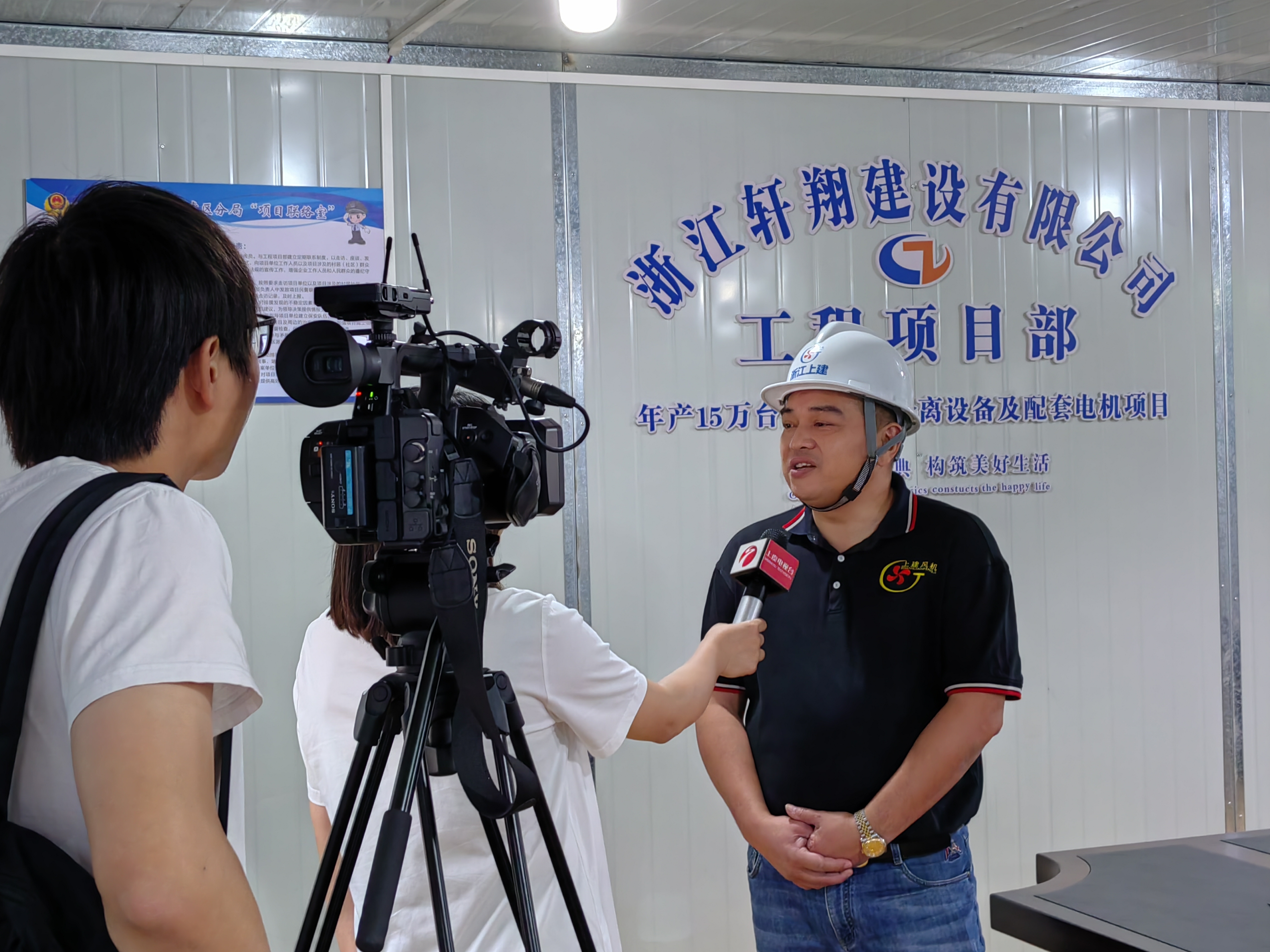 9月21日上午9时,公司年产15万台智能高端风机项目工程施工现场迎来了一批特殊的客人——上虞区电视台新闻采访组,采访和报道了年产15万台智能高端风机项目工程施工进度情况。