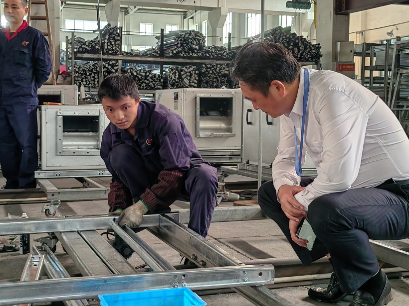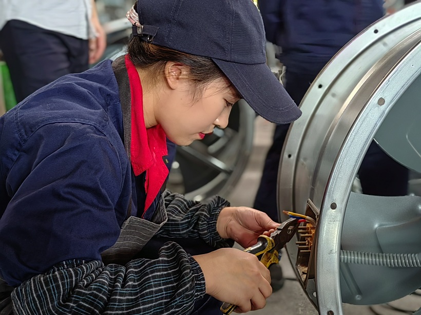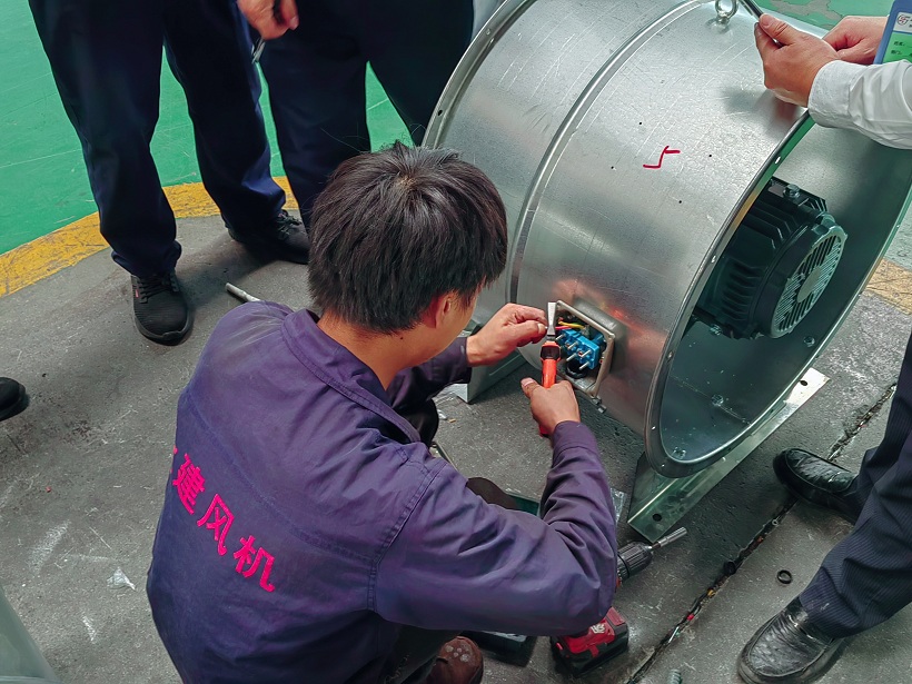 风机接线环节选手们个个斗志昂扬,动作麻利,从选尺寸,安装,拧螺丝,调平整等各道工序得心应手,心灵手巧应用的淋漓尽致,让在场观摩的公司领导啧啧称赞。