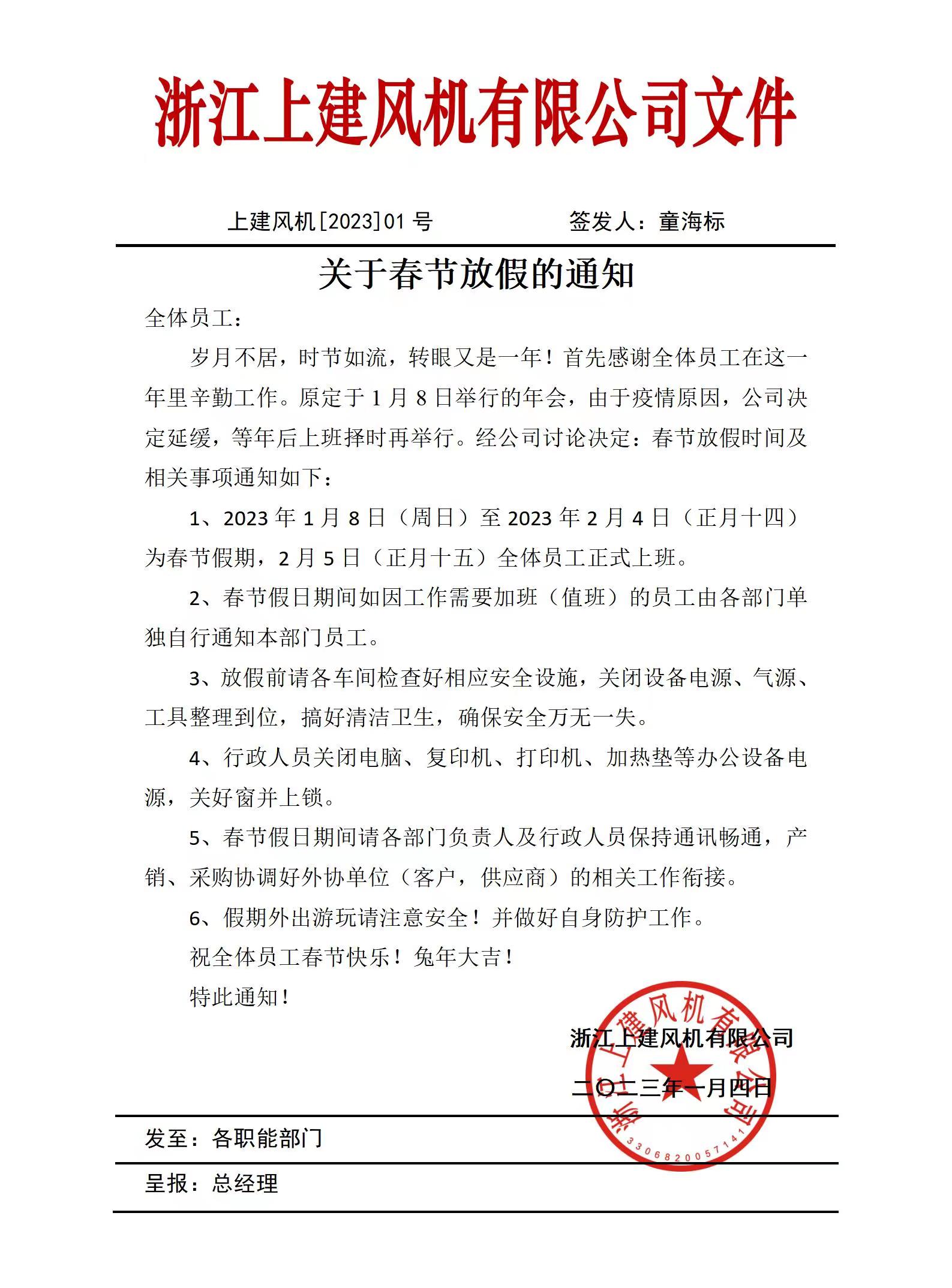 春节放假通知