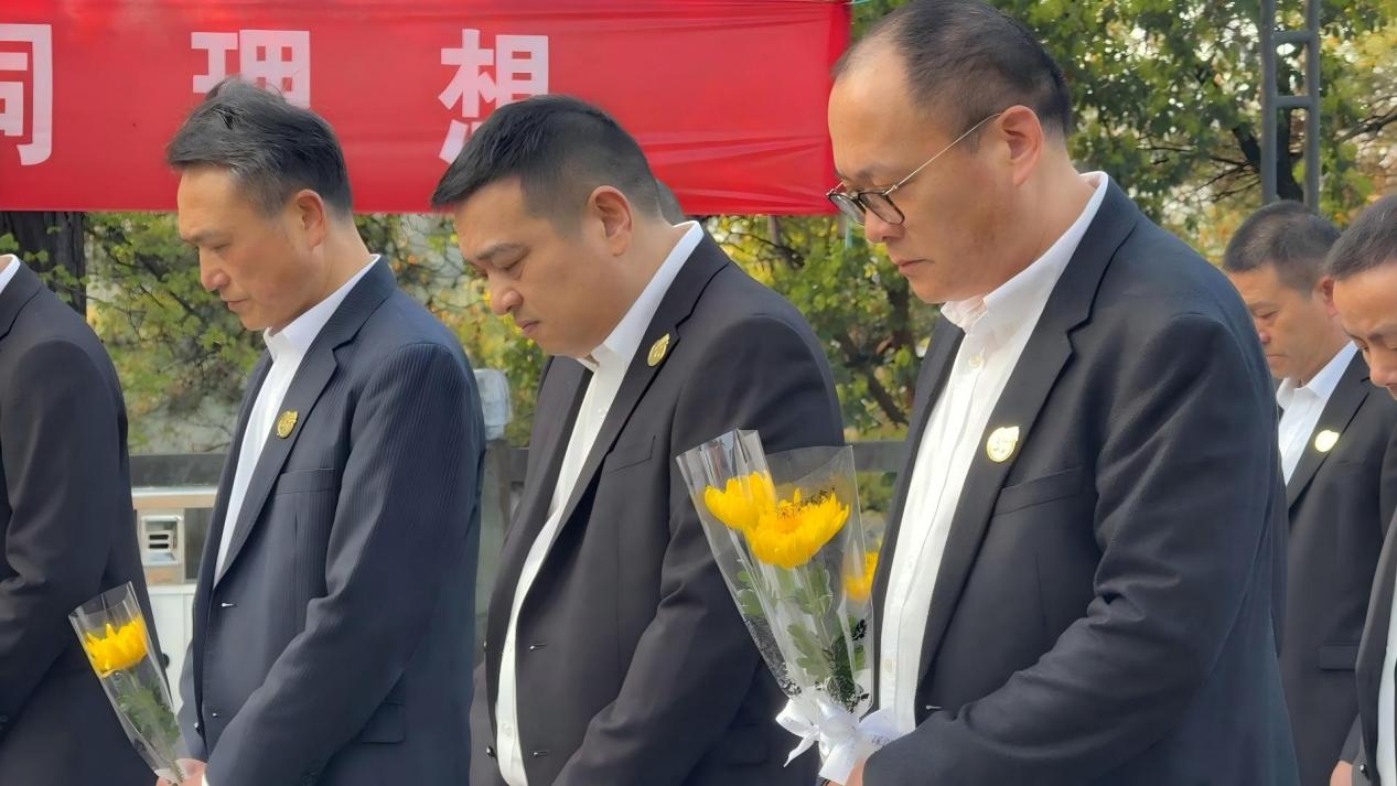 默哀结束后,董事长童海标缓步上前,仔细整理敬献的花篮,缎带上“革命先烈永垂不朽”的字样格外醒目。随后,全体人员依次缓步绕行纪念碑,逐一献上手中的鲜花,轻轻驻足瞻仰,以最朴素的方式表达对革命先烈的追思与敬仰,接受深刻的爱国主义和革命传统教育。